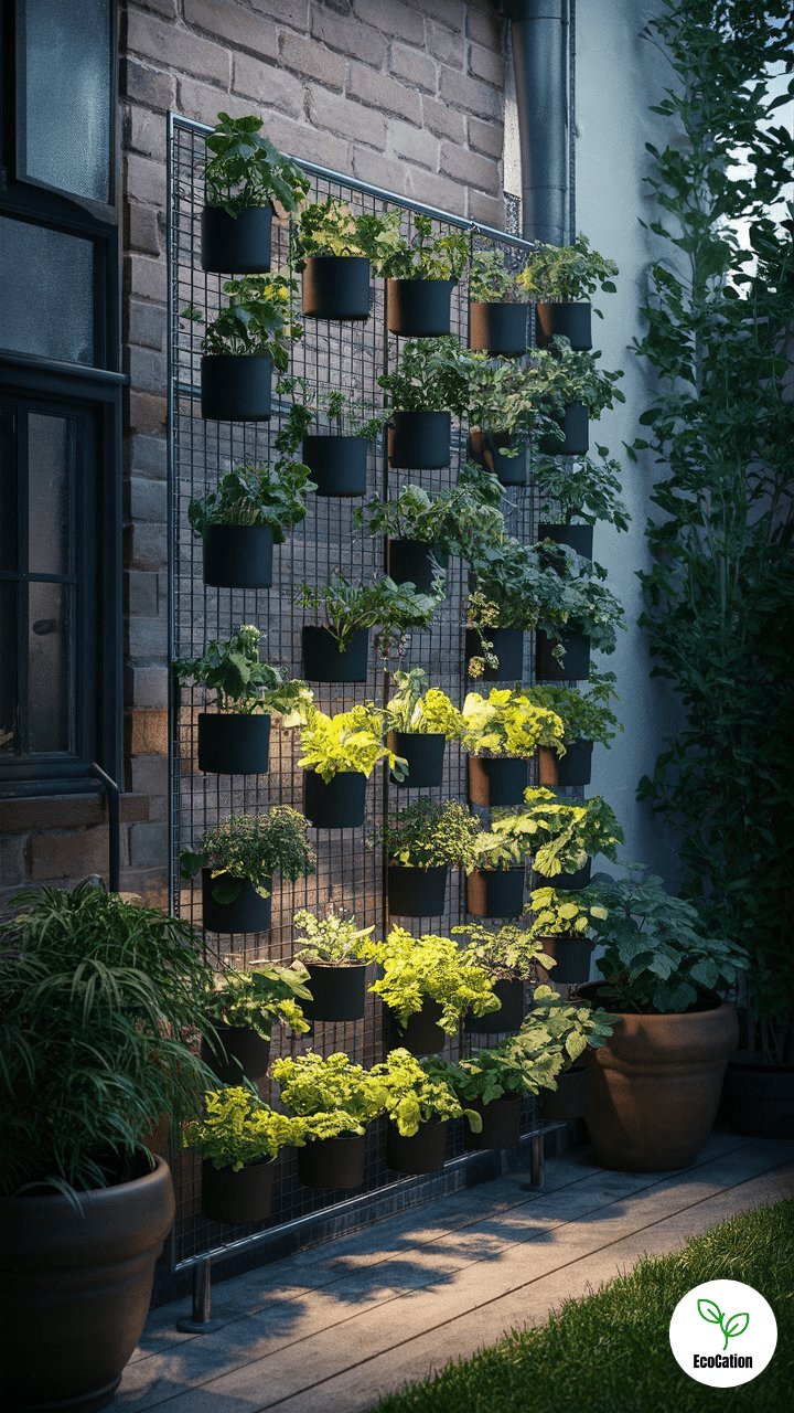 For a sleek, modern look, consider a vertical herb garden with a metal frame. Use steel pipes, wire mesh, or metal grids to create a minimalist structure that holds your herb pots. This style is durable and weather-resistant, making it a great choice for outdoor spaces. You can also incorporate industrial-style planters for a contemporary finish.